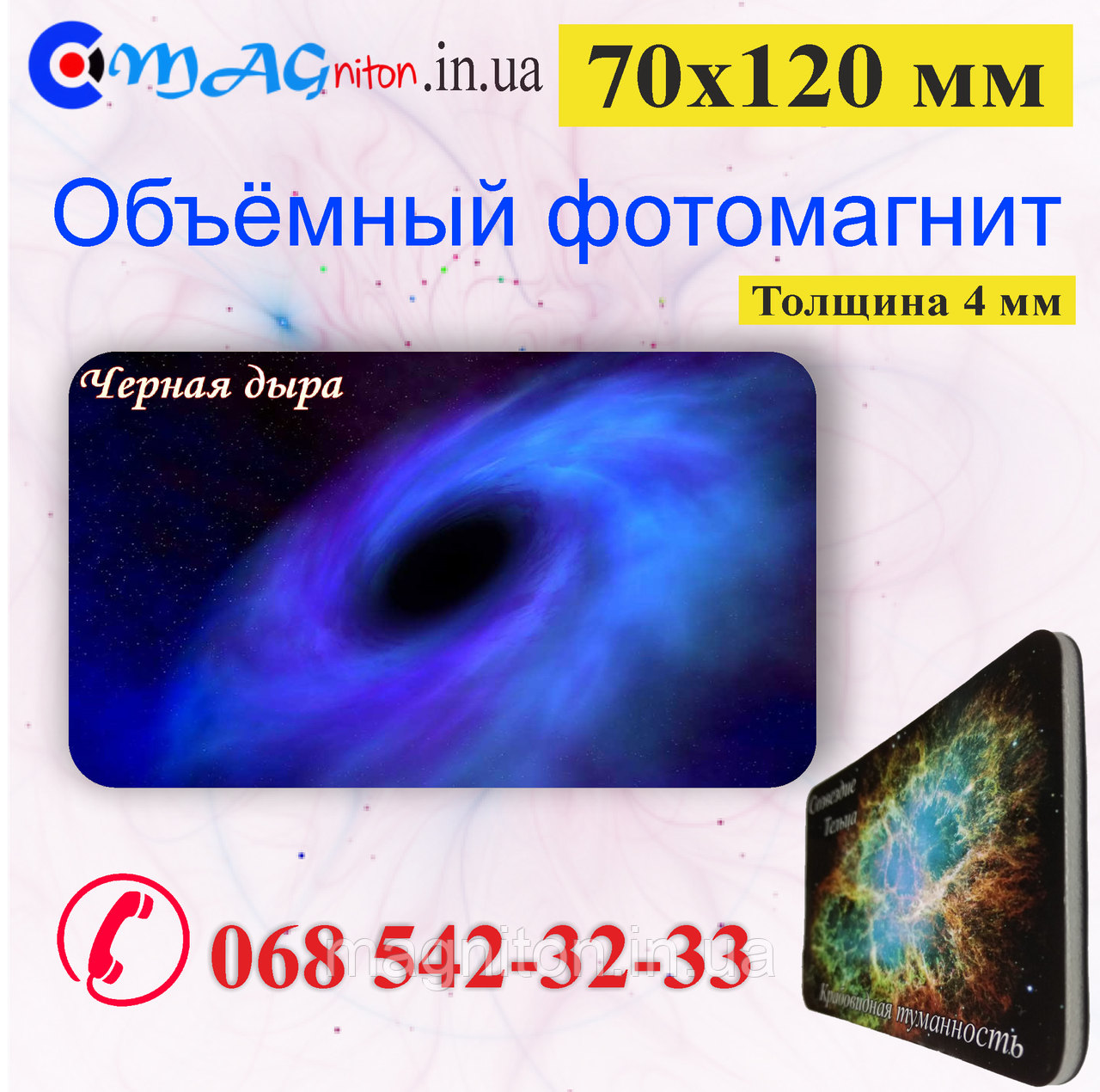 - Магніт 70х120 мм з індивідуальним зображенням, виготовляється з магнітного вінілу 0,4 мм, яскравої поліграфії та якісної ламінації.